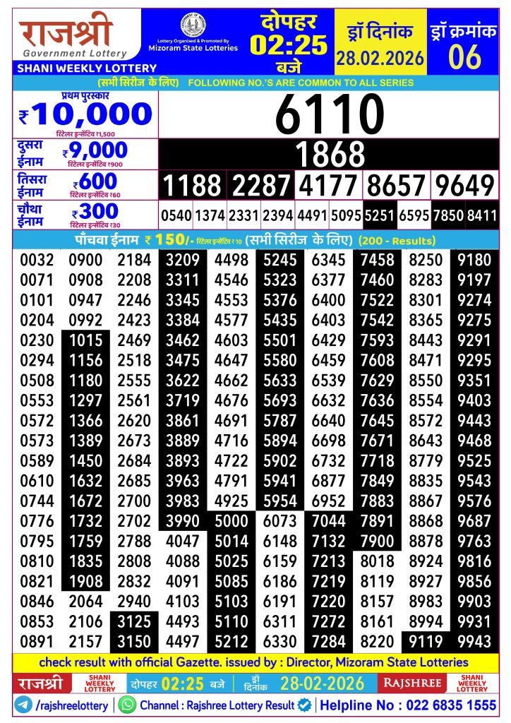 Rajshree Daily Lottery 2:25 PM Result Full Picture